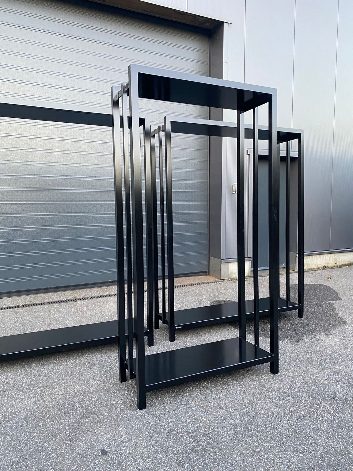 Design houtstapelbakken door ons ontworpen en gemaakt, ook in elkaar gelast en in eigen huis gespoten