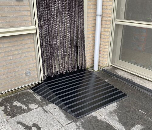 Oprijschrans op maat gemaakt voor een rolstoelgebruiker